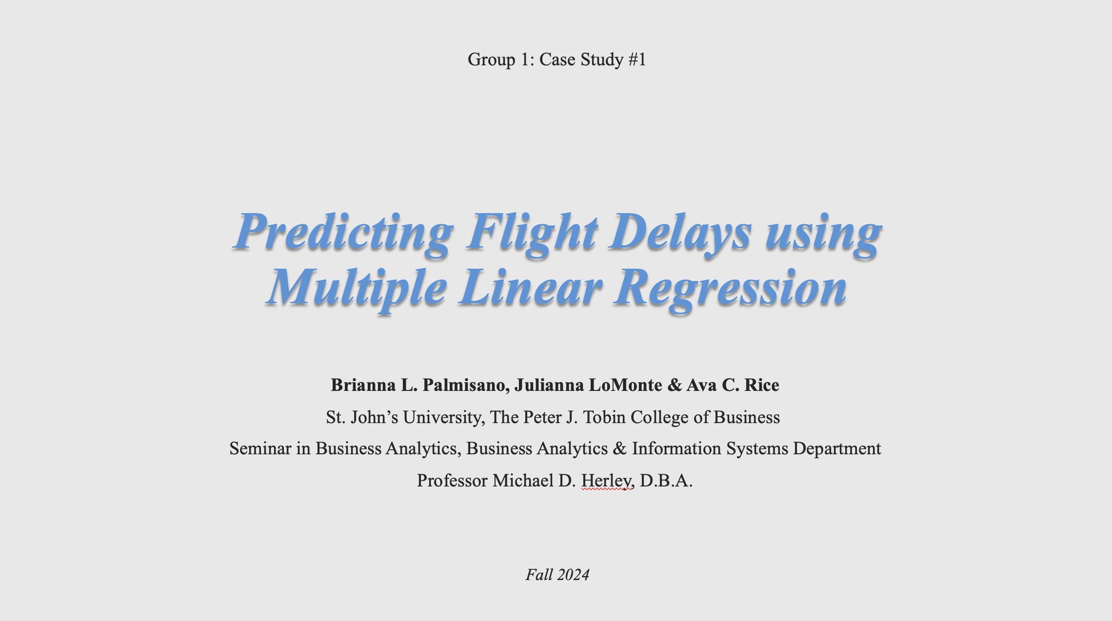 This project explores flight delays using Multiple Linear Regression (MLR), identifying key factors that influence late arrivals. By analyzing 3,593 observations from 14 airline carriers, we build a predictive model that helps airlines optimize operations, reduce costs, and improve scheduling efficiency.